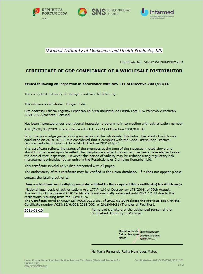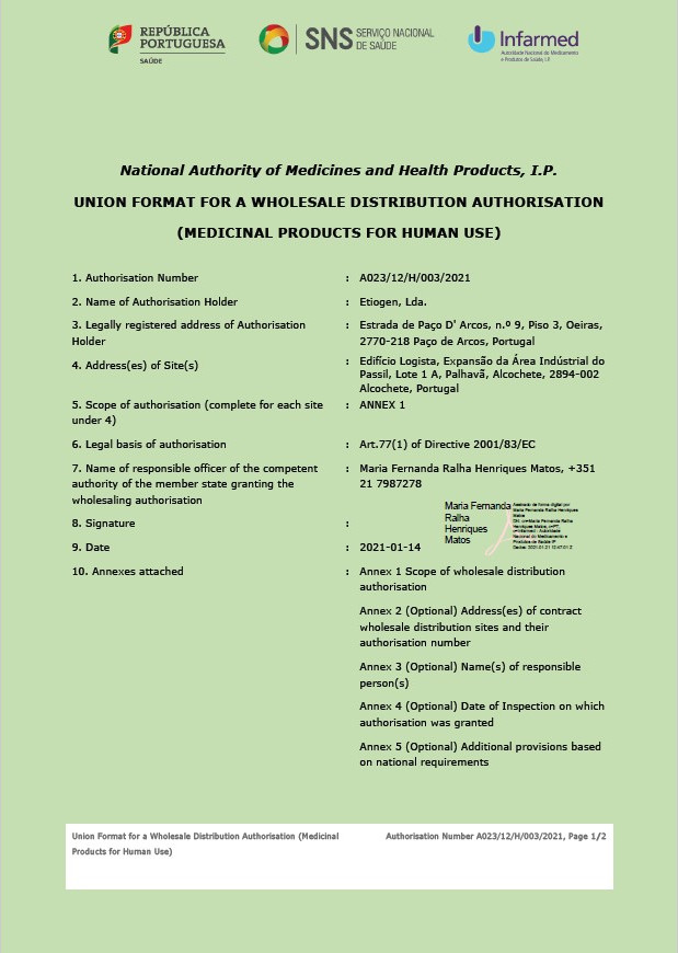 A Etiogen fundada em 2012 é uma empresa especializada em produtos farmacêuticos, dispositivos médicos, cosméticos e suplementos alimentares que assume uma visão global de processo, atuando em diversas áreas desde a comercialização e distribuição até às áreas de consultadoria de negócios e gestão. Encontra-se em fase de obtenção de licenças para a comercialização de medicamentos veterinários, derivados de plasma e psicotrópicos.